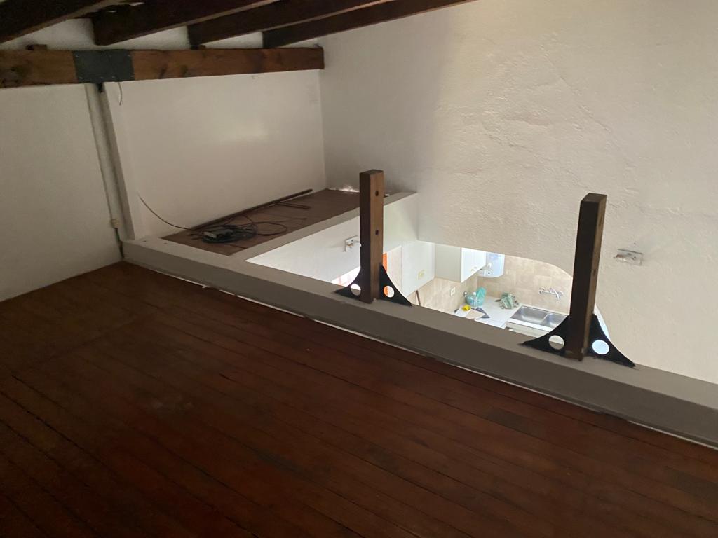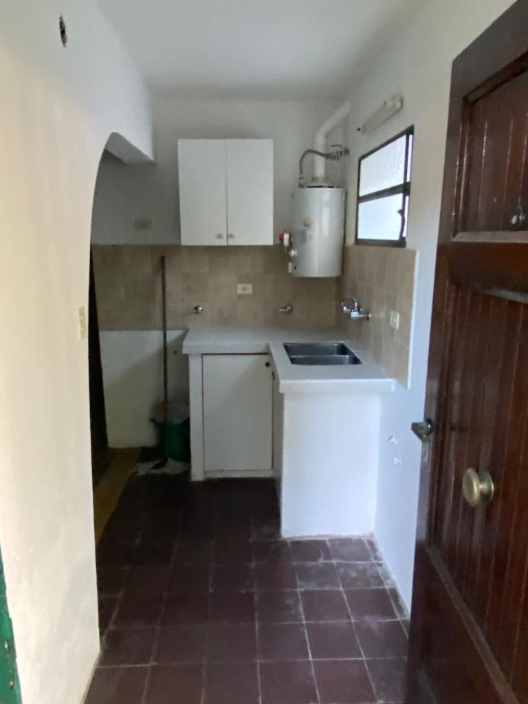 Patio chico con parrillero. Living comedor, baño. Calle exclusiva con garita de seguridad en la esquina. Se puede dejar el auto en la calle.